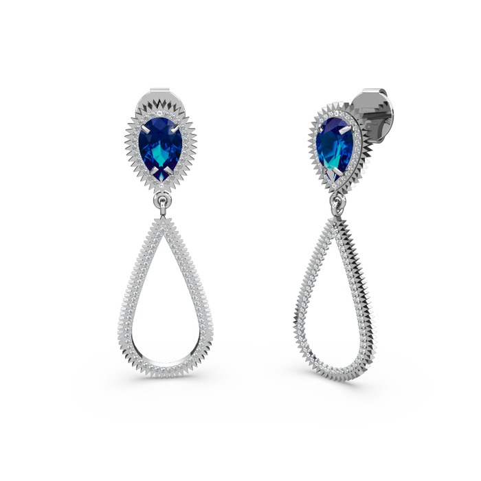 Pırlanta ve lab safir 925 ayar gümüş küpe (1.9536 karat)