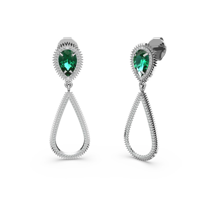 Pırlanta ve yeşil kuvars 18 ayar beyaz altın küpe (1.9536 karat)