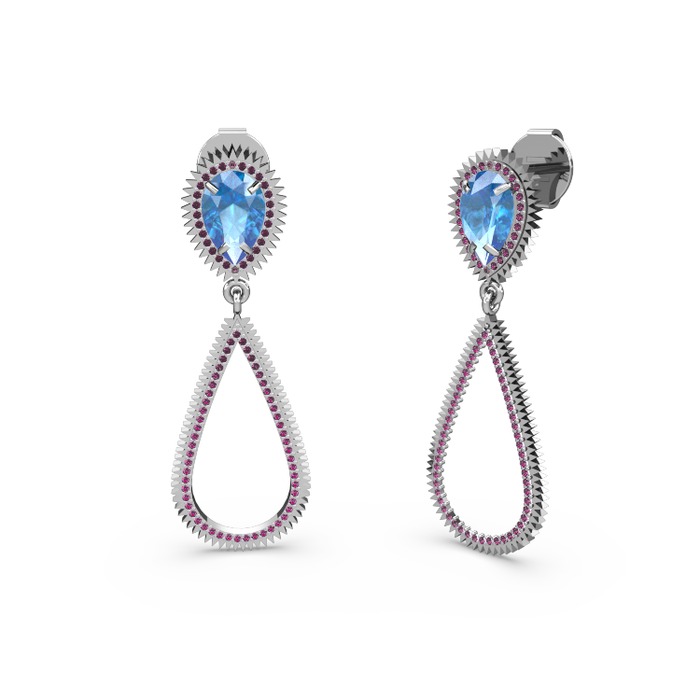 Rodolit garnet ve akuamarin 8 ayar beyaz altın küpe