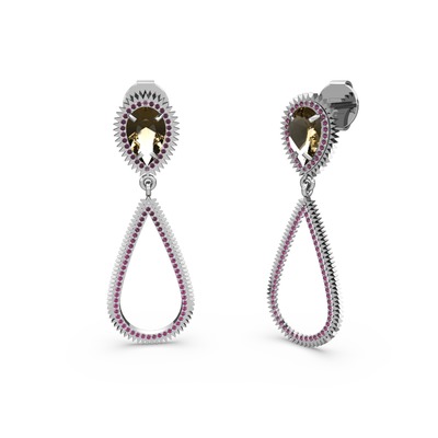Rodolit garnet ve dumanlı kuvars 8 ayar beyaz altın küpe
