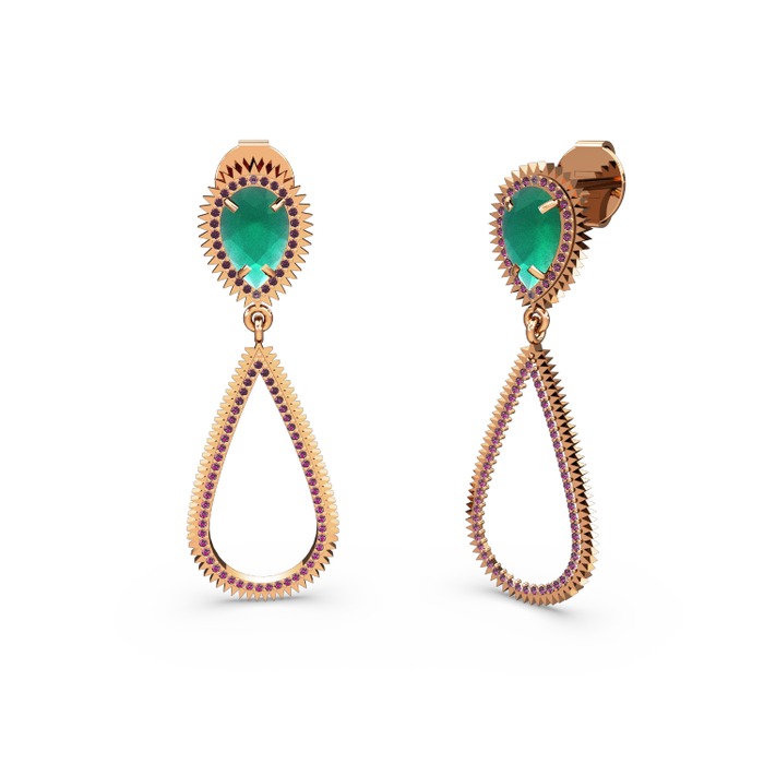 Rodolit garnet ve kök zümrüt 925 ayar rose altın kaplama gümüş küpe
