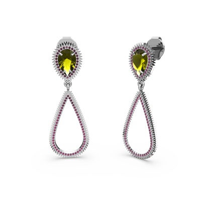 Rodolit garnet ve peridot 8 ayar beyaz altın küpe