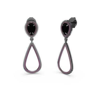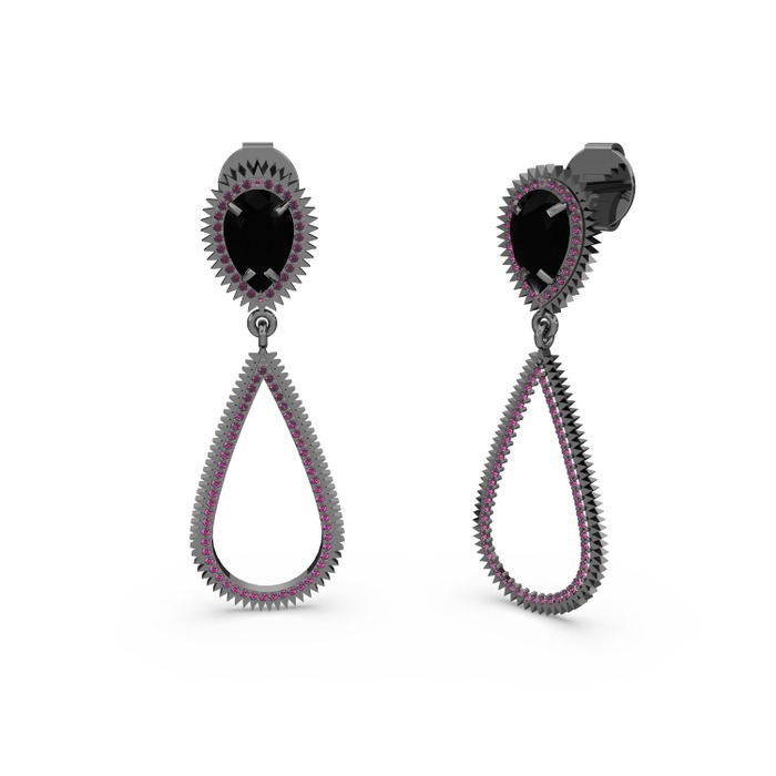 Rodolit garnet ve siyah zirkon 925 ayar siyah rodyum kaplama gümüş küpe