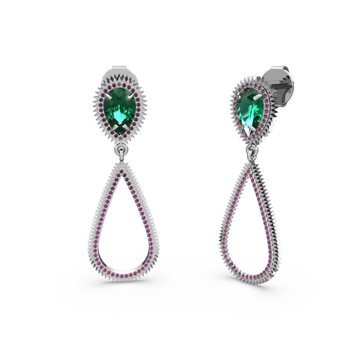 Rodolit garnet ve yeşil kuvars 18 ayar beyaz altın küpe