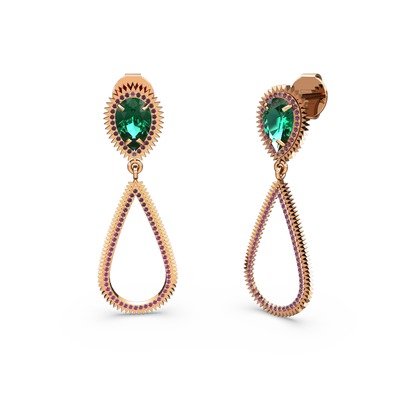 Rodolit garnet ve yeşil kuvars 925 ayar rose altın kaplama gümüş küpe