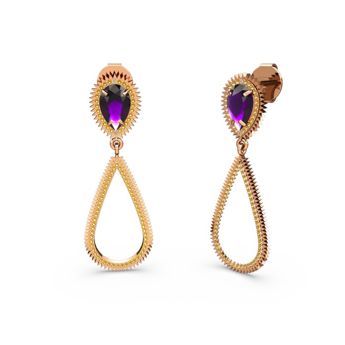 Sitrin ve ametist 925 ayar rose altın kaplama gümüş küpe