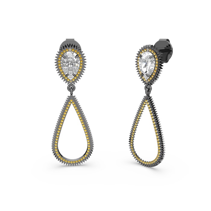 Sitrin ve beyaz zirkon 925 ayar siyah rodyum kaplama gümüş küpe