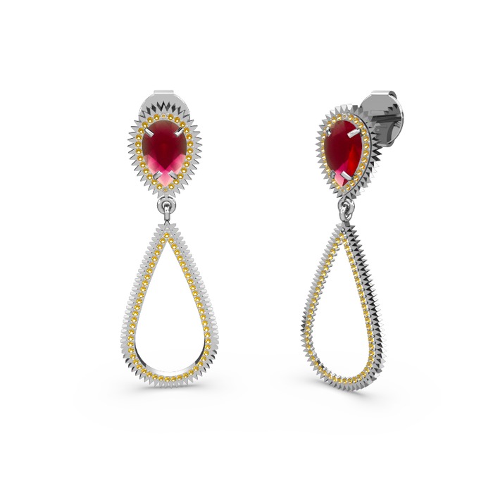Sitrin ve kök yakut 14 ayar beyaz altın küpe