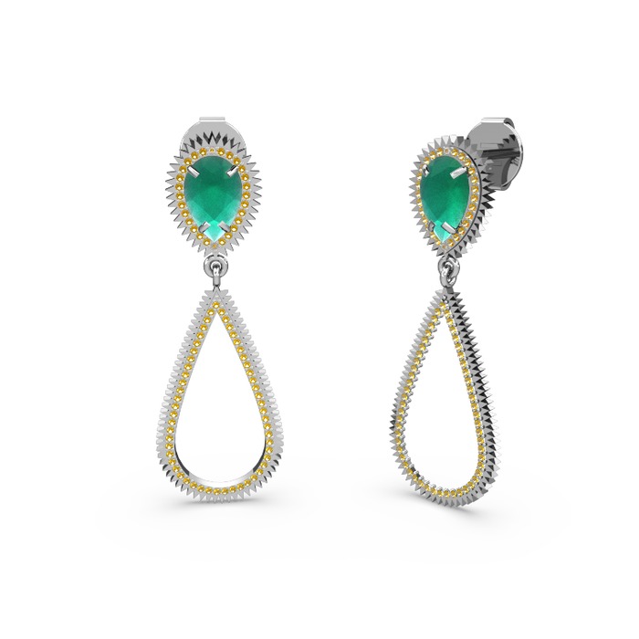 Sitrin ve kök zümrüt 8 ayar beyaz altın küpe