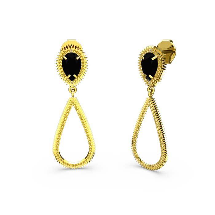 Sitrin ve siyah zirkon 14 ayar altın küpe