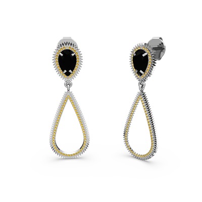 Sitrin ve siyah zirkon 8 ayar beyaz altın küpe