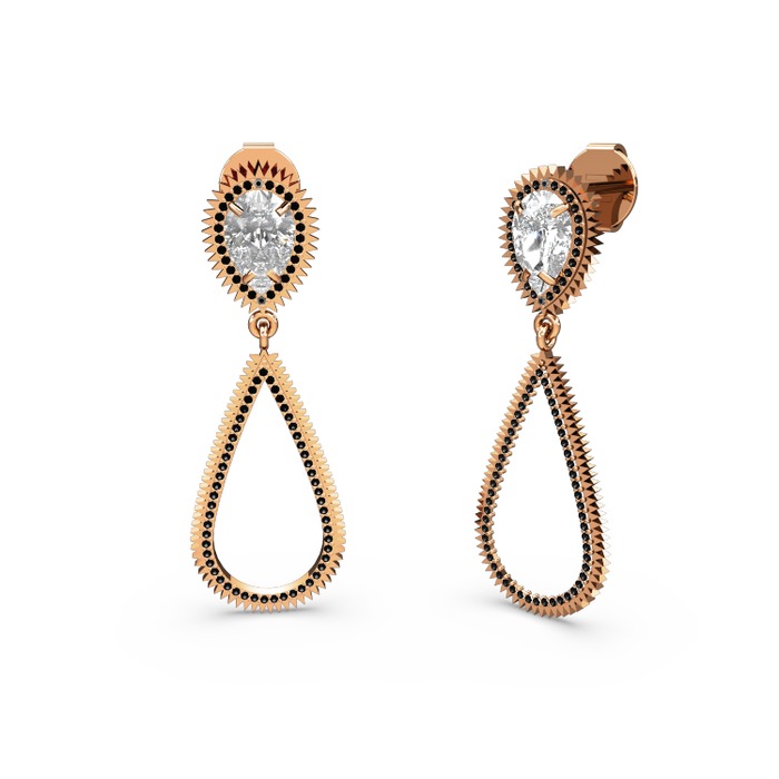 Siyah zirkon ve beyaz zirkon 18 ayar rose altın küpe