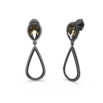Siyah zirkon ve dumanlı kuvars 925 ayar siyah rodyum kaplama gümüş küpe