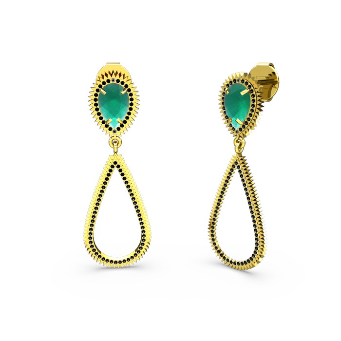 Siyah zirkon ve kök zümrüt 14 ayar altın küpe