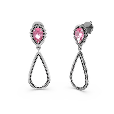 Siyah zirkon ve pembe kuvars 18 ayar beyaz altın küpe