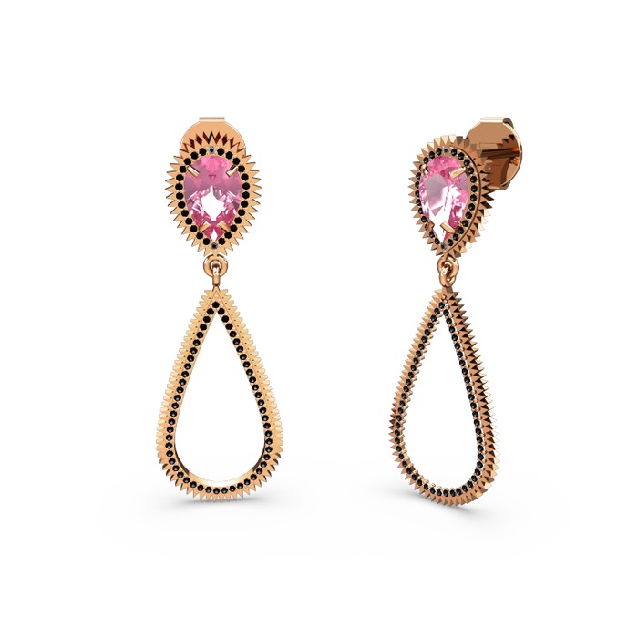 Siyah zirkon ve pembe kuvars 925 ayar rose altın kaplama gümüş küpe