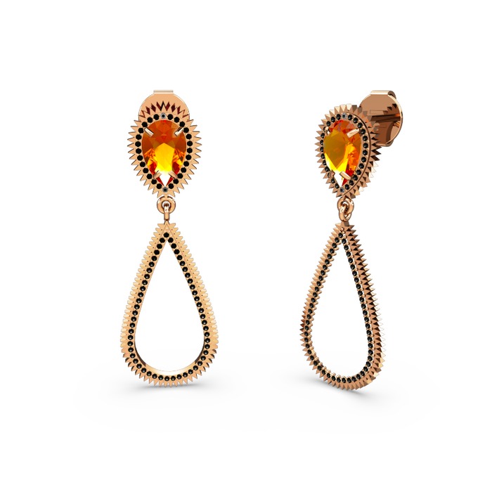Siyah zirkon ve sitrin 925 ayar rose altın kaplama gümüş küpe