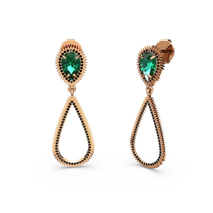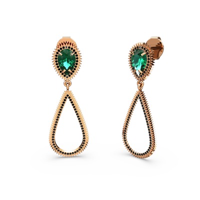 Siyah zirkon ve yeşil kuvars 925 ayar rose altın kaplama gümüş küpe