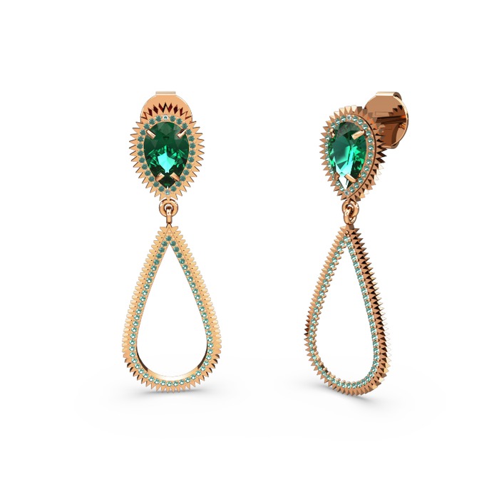 Yeşil kuvars 8 ayar rose altın küpe