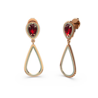 Yeşil kuvars ve garnet 925 ayar rose altın kaplama gümüş küpe