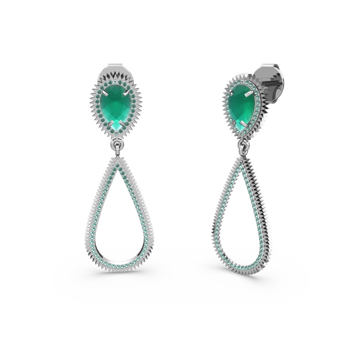 Yeşil kuvars ve kök zümrüt 925 ayar gümüş küpe