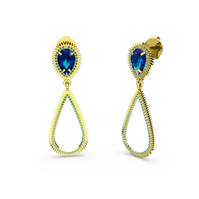 Yeşil kuvars ve lab safir 925 ayar altın kaplama gümüş küpe