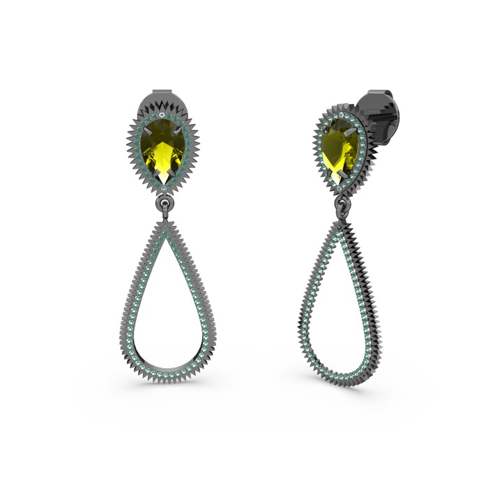 Yeşil kuvars ve peridot 925 ayar siyah rodyum kaplama gümüş küpe