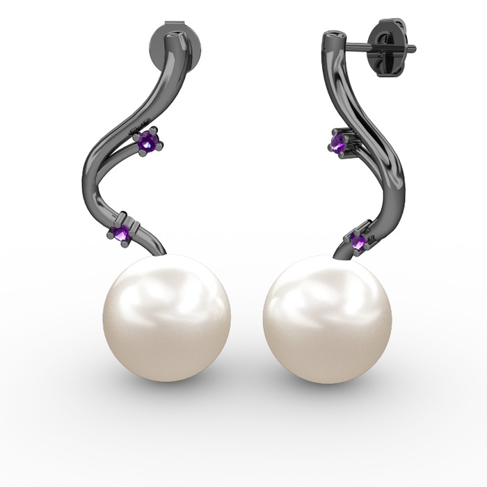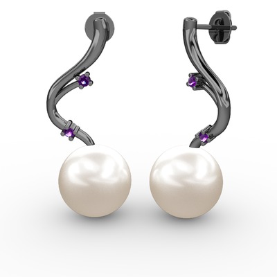 Inci ve ametist 925 ayar siyah rodyum kaplama gümüş küpe