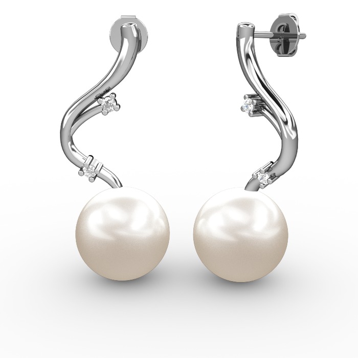 Inci ve beyaz zirkon 18 ayar beyaz altın küpe