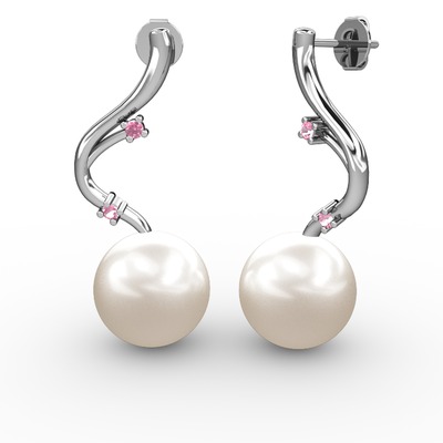 Inci ve pembe kuvars 18 ayar beyaz altın küpe