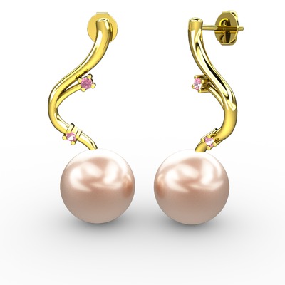 Pembe inci ve pembe kuvars 14 ayar altın küpe