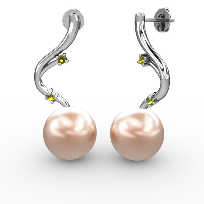 Pembe inci ve peridot 14 ayar beyaz altın küpe