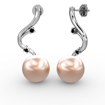 Pembe inci ve siyah zirkon 14 ayar beyaz altın küpe