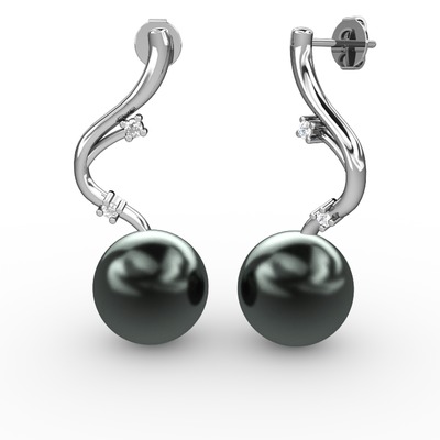 Siyah inci ve beyaz zirkon 18 ayar beyaz altın küpe