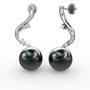 Siyah inci ve beyaz zirkon 8 ayar beyaz altın küpe