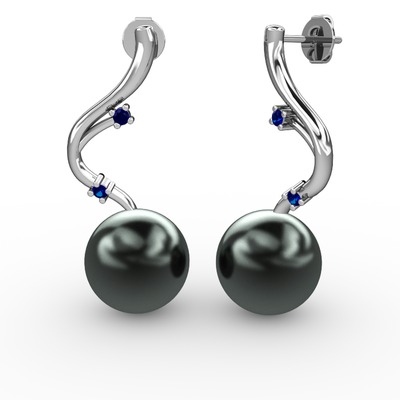 Siyah inci ve lab safir 14 ayar beyaz altın küpe