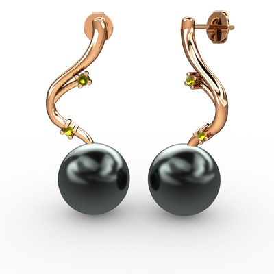 Siyah inci ve peridot 925 ayar rose altın kaplama gümüş küpe