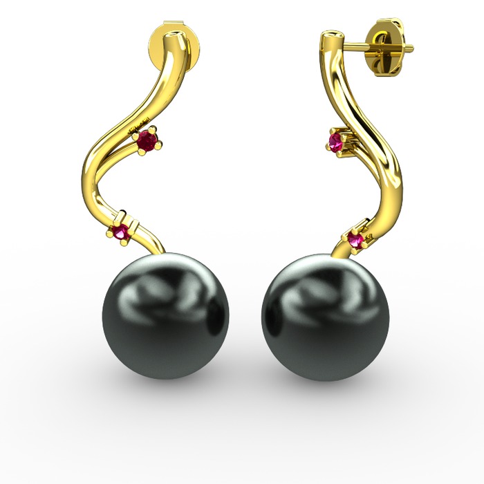 Siyah inci ve rodolit garnet 925 ayar altın kaplama gümüş küpe