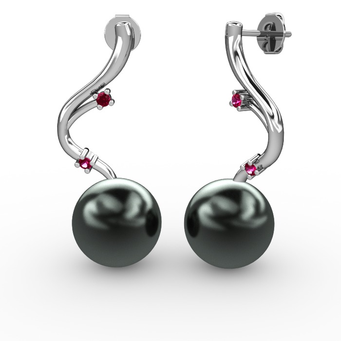Siyah inci ve rodolit garnet 925 ayar gümüş küpe