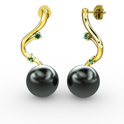 Siyah inci ve yeşil kuvars 925 ayar altın kaplama gümüş küpe