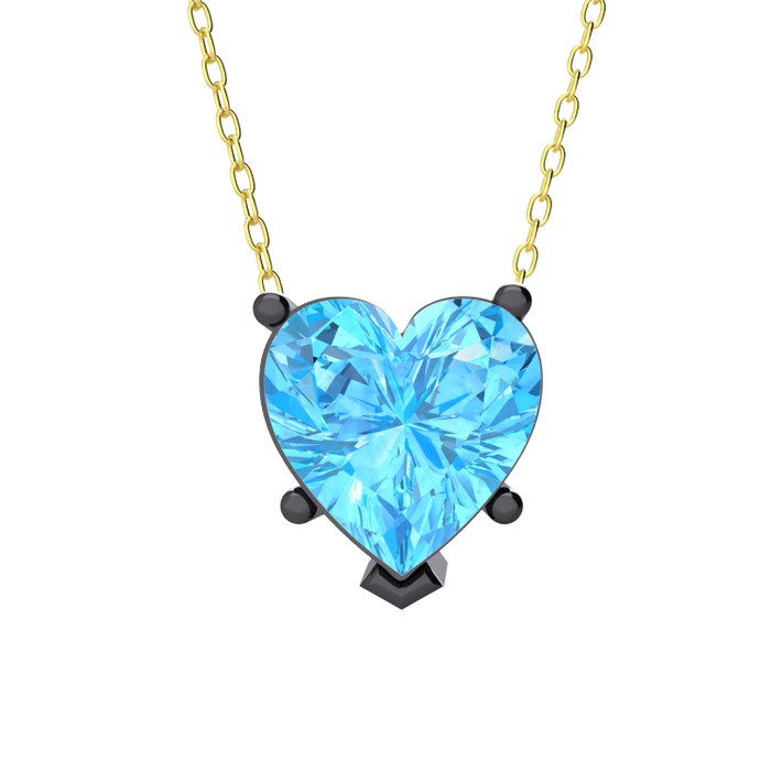 Akuamarin 925 ayar siyah rodyum kaplama gümüş kolye (40 cm altın rolo zincir)