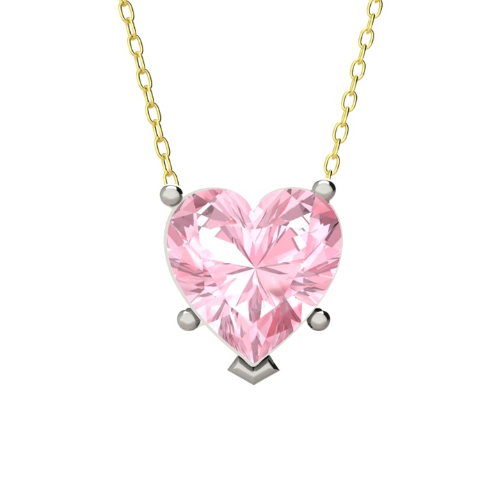 Pembe kuvars 8 ayar beyaz altın kolye (40 cm gümüş rolo zincir)