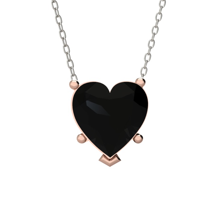 Siyah zirkon 8 ayar rose altın kolye (40 cm gümüş rolo zincir)