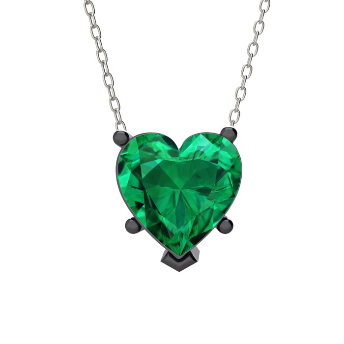 Yeşil kuvars 925 ayar siyah rodyum kaplama gümüş kolye (40 cm beyaz altın rolo zincir)