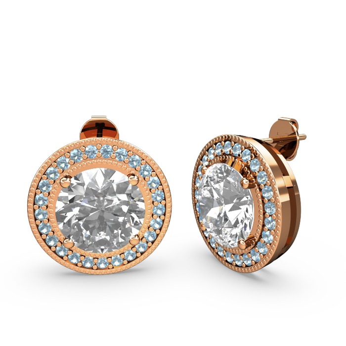 Akuamarin ve beyaz zirkon 8 ayar rose altın küpe