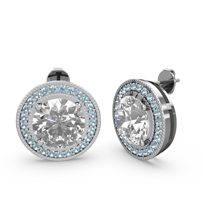 Akuamarin ve swarovski 8 ayar beyaz altın küpe