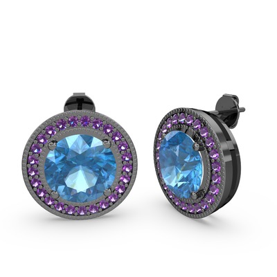 Ametist ve akuamarin 925 ayar siyah rodyum kaplama gümüş küpe