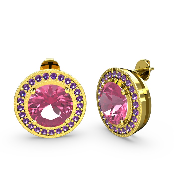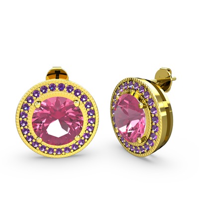 Ametist ve pembe kuvars 8 ayar altın küpe