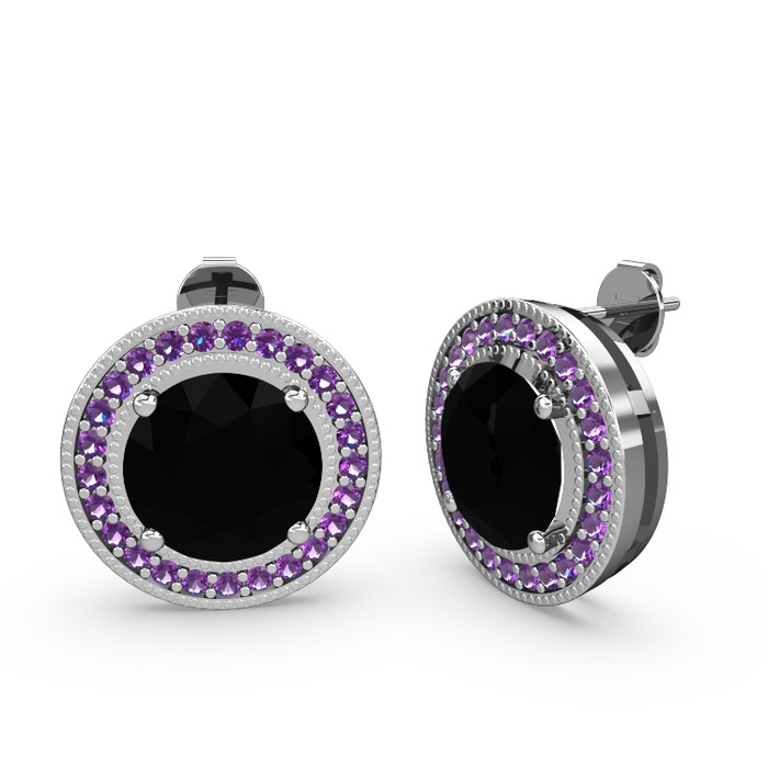 Ametist ve siyah zirkon 8 ayar beyaz altın küpe