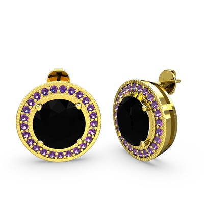 Ametist ve siyah zirkon 925 ayar altın kaplama gümüş küpe